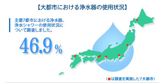 浄水器協会では、2年ごとに、浄水器使用状況について調査しています。 2019年度より、主要7都市における浄水器、浄水シャワーの使用状況について調査しました。